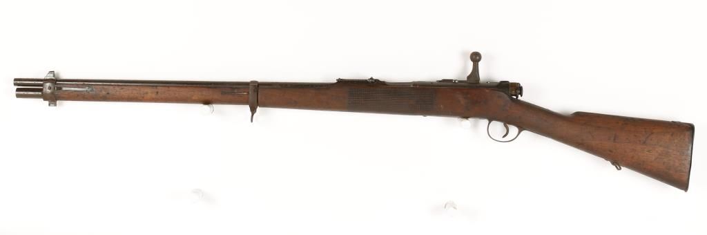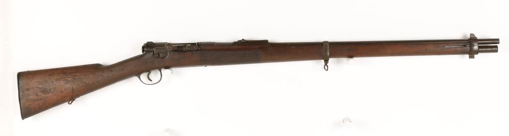 Japanese military bolt action rifle with 29-1/2" barrel. Full length wood stock with tubular magazine located in the forearm. Maintains original sights with bayonet lug. With good working action. Condition: Fair showing moderate pitting throughout and wood is fair to good showing age. *Antique Firearm*