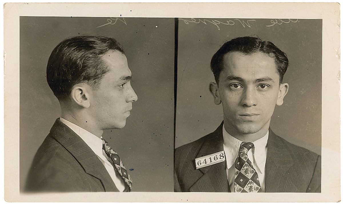 Bootlegger-turned-informant who fled to St. Paul, Minnesota, and disguised his identity to avoid the pursuing New York Mafia; his plot failed, and Lucky Luciano successfully contracted with Murder, Inc., to assassinate him. Original glossy 5.5 x 3.25 mug shot photo of Wagner, filled out with sparse details on the reverse, “Abraham Wagner, 7/25/32 Shot & Killed, St. Paul Minn.” In fine condition. Provenance: Eugene Canevari Collection.