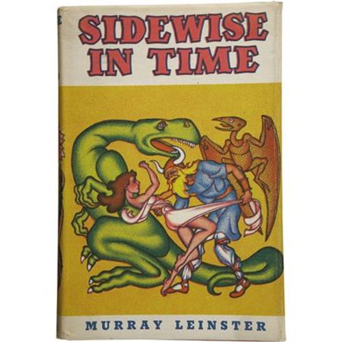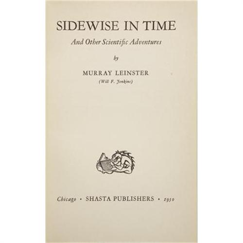 <B>Murray Leinster [pseudonym of Will F. Jenkins]</B></I>. <B><I>Sidewise in Time</B></I></B></I><B>.</B></I> Chicago: Shasta Publishers, 1950.<BR><BR>First edition. Octavo. 211 pages. Jacket design by Hannes Bok.<BR><BR>Red cloth with silver spine titles. Internal contents tight. Dust jacket bright with some slight toning to the spine. Light shelf wear to the edges. Fine condition. <I>From the Robert and Diane Yaspan Collection.</B></I><BR><BR><b>Shipping:</b> Books & Catalogs (<a target="_blank" href="http://www.heritageauctions.com/common/shipping.php">view shipping information</a>)