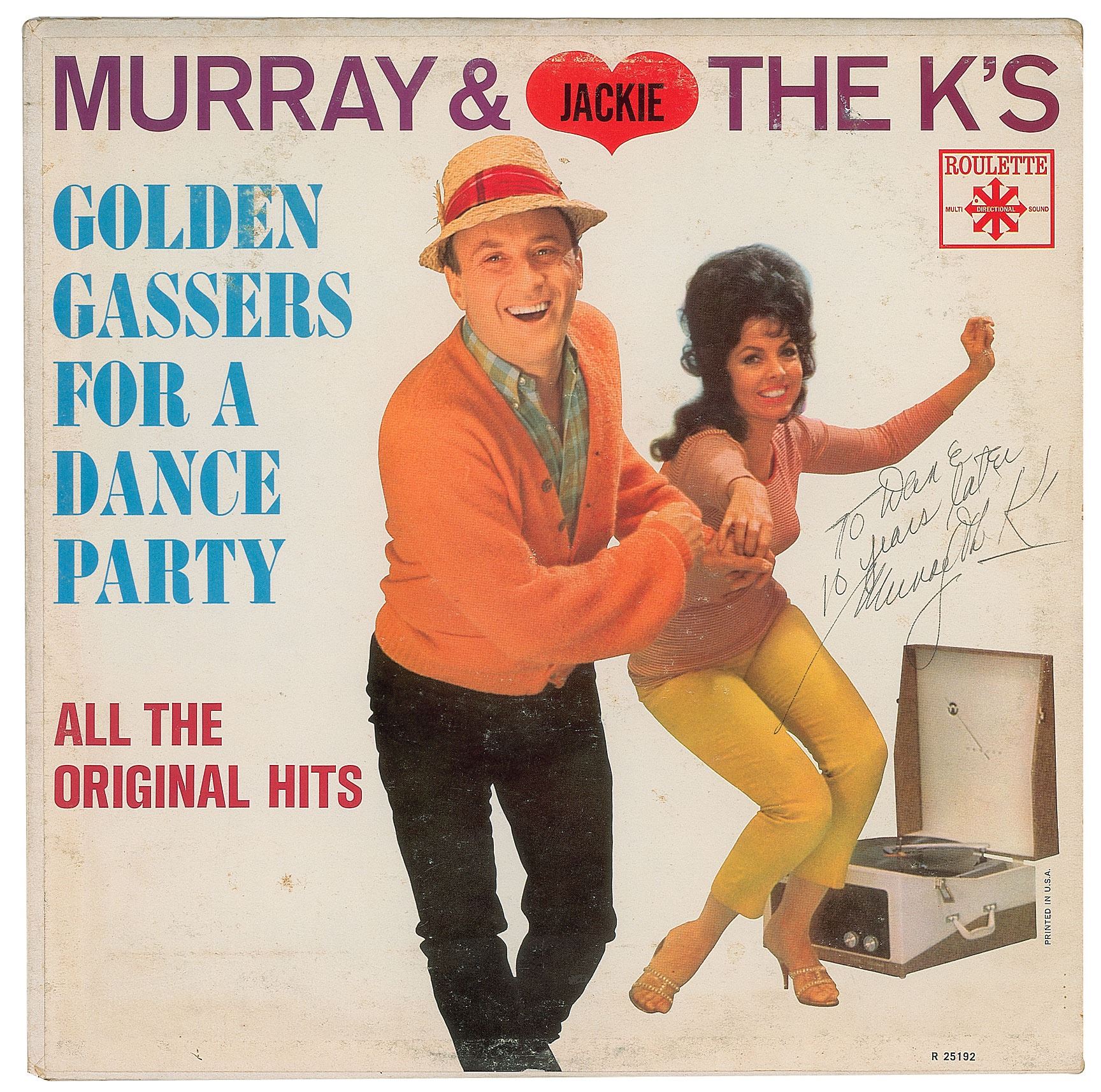 Pioneering rock and roll promoter and disc jockey (1922–1982), born Murray Kaufman, whose frenetic style became a model for the antics of present-day on-air personalities; an early champion of the Beatles, he came to be known as 'the fifth Beatle' during their rise to fame in America. Golden Gassers for a Dance Party album signed on the front in black ballpoint, "To Dan E, 10 years later, Murray the K." In fine condition, with light scuffing. The record is included.