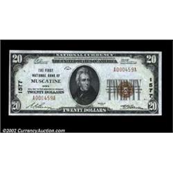 Muscatine, IA - $20 1929 Ty. 1 The First NB Ch. # 1577Bright Choice Crisp Uncirculated, a bank not o