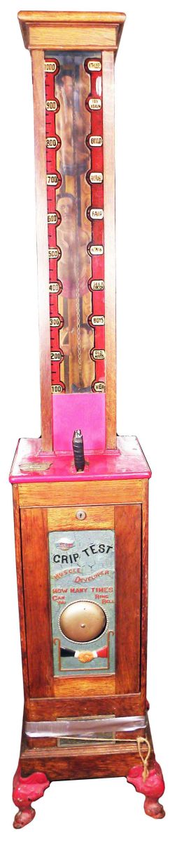 Muscle Developer, coin operated Grip Test. Excellent working condition, comes with key. 16 X 84 X 14 1/2 inches.
