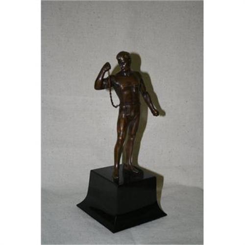 Modern Scuplture of a Man in Bondage in Chains on Marble Black Base. 12"ht x 5.5"w black Marble base dimensions 5"x5" unsigned