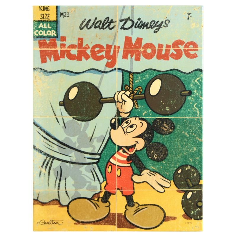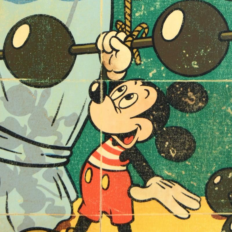 "Muscle Mickey" is a limited edition giclee on gallery wrapped canvas, numbered 28 out of 195 and hand signed by Trevor Carlton. This piece is licensed by Disney Fine Art. Includes Certificate of Authenticity! Measures approx. 18" x 24" (image).
