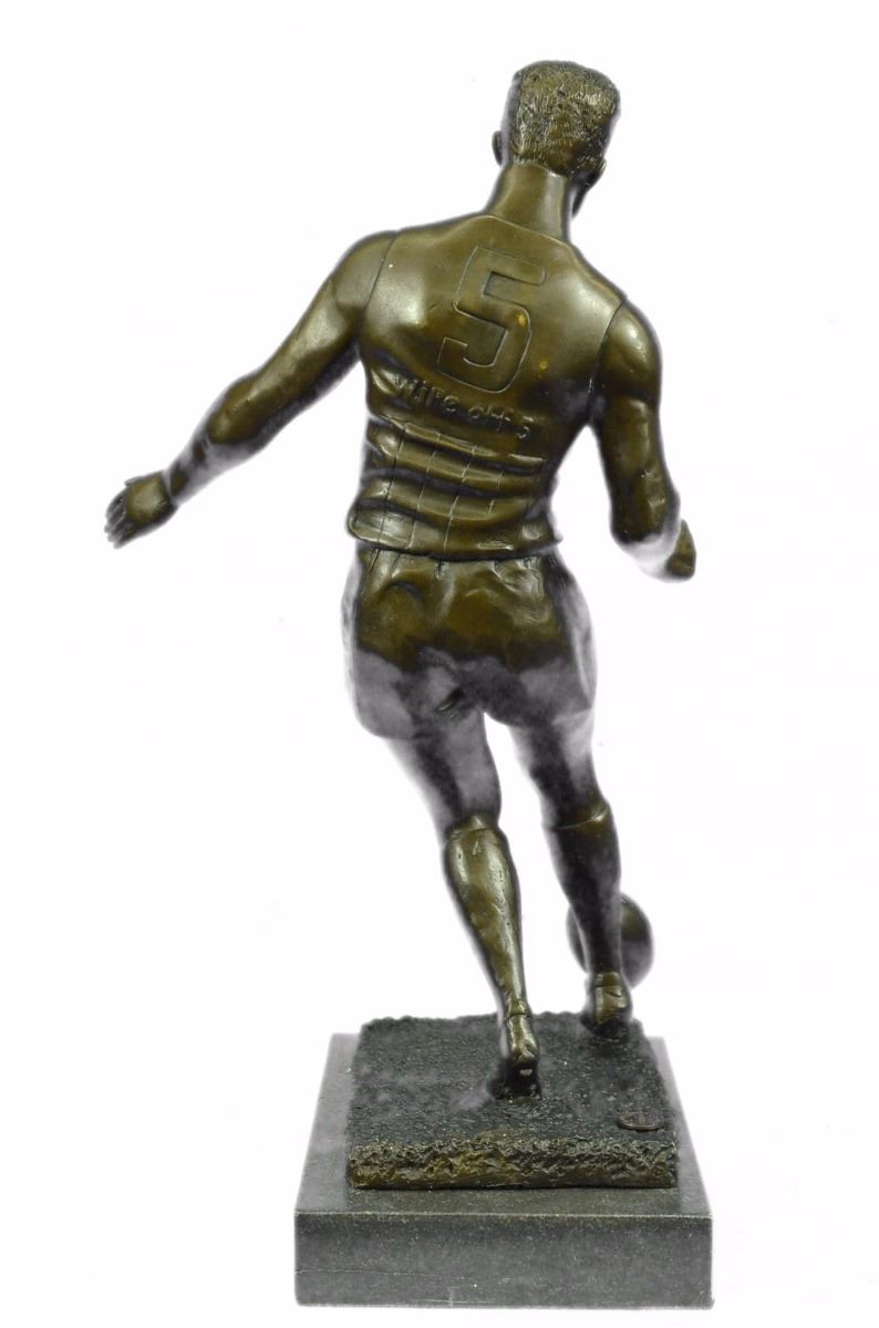 A Muscular Rugby Player Runs For The End Field, Trying To Skip The Yards And Avoid Being Tackled. His Powerful Legs Ache As He Sprints And Dodges. He Kicking The Ball Under His Protectively. Every Once In A While He Glances Over His Shoulder To See How Close His Opponents Are. He Eyes The White Touch Down Line. He Can Hear Another Player Barreling Down On Him. He Glances To His Teammate And Prepares To Hand The Ball Over, Sacrificing Himself For The Win. 100% Bronze And Handmade, This Brown Patina Sculpture Was Cast Using The "Lost Wax Method" And Mounted On A Black Marble Base. Bronze Dimensions With Marble Base: Height 15 X Width 8 inches. Weight: 10 Lbs.