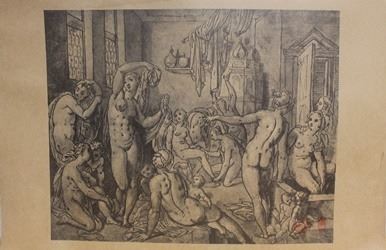 Museum Lithograph; Bearing a Museum Stamp(s); Size Approx. 17" x 11" In. Printed in the late 1800's to early 1900's. One of the remaining images left from a flood that destroyed the Museum in 1904. Lithographs after artists such as Albrecht Durer and Heinrich Kley.