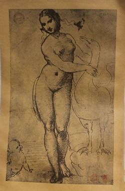 Museum Lithograph; Bearing a Museum Stamp(s); Size Approx. 17" x 11" In. Printed in the late 1800's to early 1900's. One of the remaining images left from a flood that destroyed the Museum in 1904. Lithographs after artists such as Albrecht Durer and Heinrich Kley.
