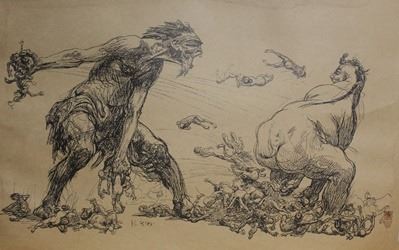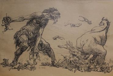 Museum Lithograph; Bearing a Museum Stamp(s); Size Approx. 17" x 11" In. Printed in the late 1800's to early 1900's. One of the remaining images left from a flood that destroyed the Museum in 1904. Lithographs after artists such as Albrecht Durer and Heinrich Kley.