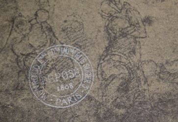 Museum Lithograph; Bearing a Museum Stamp(s); Size Approx. 17" x 11" In. Printed in the late 1800's to early 1900's. One of the remaining images left from a flood that destroyed the Museum in 1904. Lithographs after artists such as Albrecht Durer and Heinrich Kley.