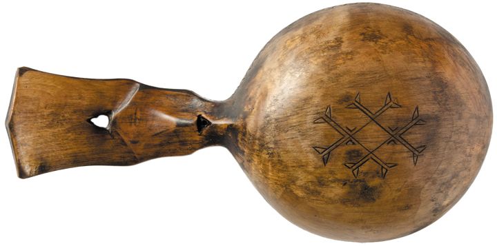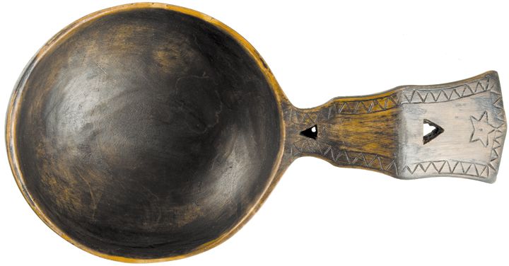Late 18th Century Colonial & Revolutionary War Era, Hand-Carved Treenware Welsh Spoon or Scoop, “Folk Art” Decorated, Measures 7.5” long with 3.5” bowl, Choice Extremely Fine.