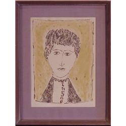 GIRL WITH NECKLACE, color lithograph, signed in pencil, from the numbered edition 200, image 15 x 10 1/2", full margins, framed (no glass). STARTING BID $20. ESTIMATE $20 TO $1000
