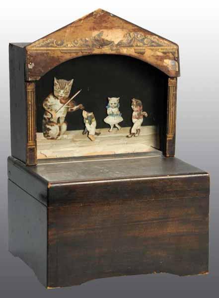 Description Manivelle. Condition (Excellent). Size 5 - 5/8". CORRECTION - PAPER LOSS TO ARCADE. SMALL CAT'S HEAD IS MISSING. WORKS WELL.