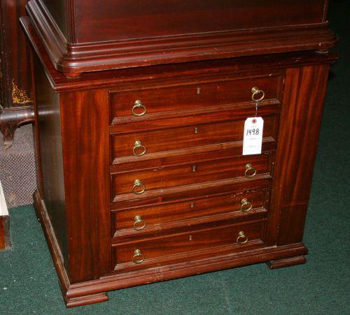 Chest in mahogany with five sturdy, free moving drawers for music box disc storage. Excellent condition. 27 ½" x 30"