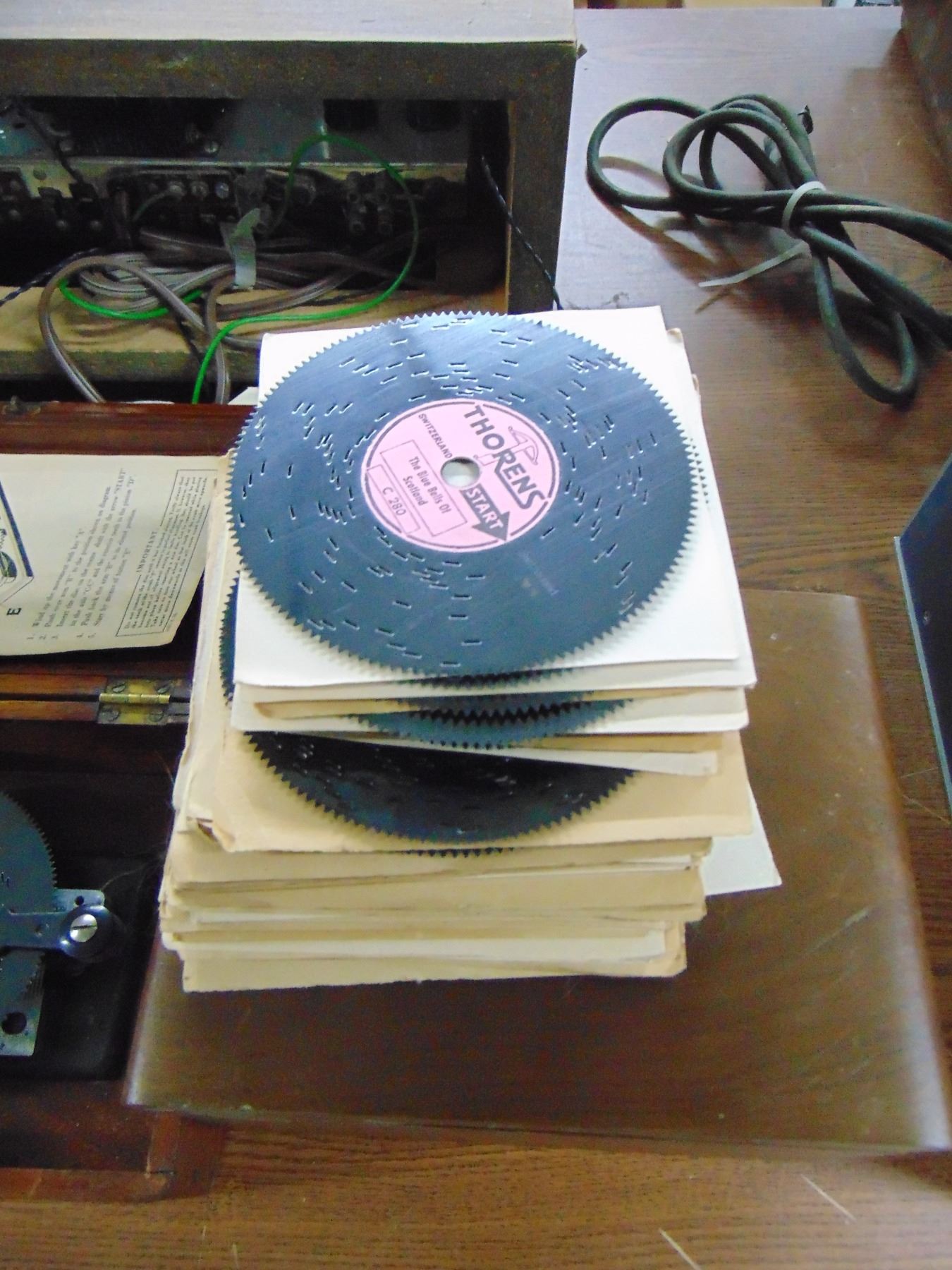 Thorens Swiss made music box with 50+ four inch music discs; works