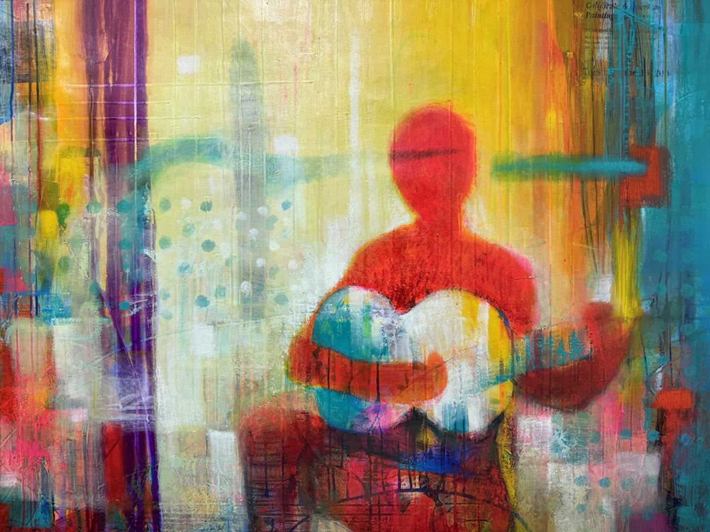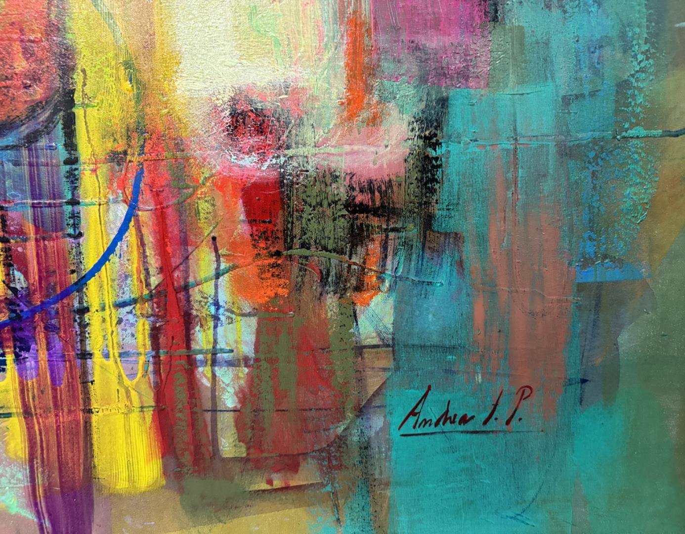 Enchanting original acrylic on canvas signed by the artist. This artwork comes rolled in a tube for easy shipping. Art size 60x60 inches.
