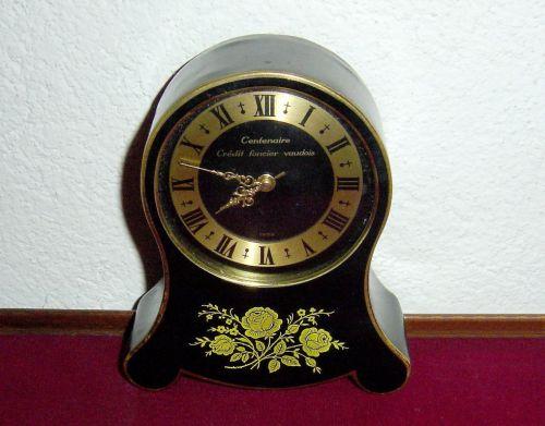 Réveil à musique, signé LE COULTRE, noir avec décor floral, années 1960