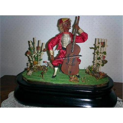 <table width="100%" border="0" cellspacing="0" cellpadding="4"><tr><td><em> </em></td></tr><tr> <td width="100%"> Musical and automaton monkey cello player, circa 1875. Action includes bowing the cello, slowly nodding moving his eyes and opening his mouth. The monkey is seated on a base containing the music and mechanical mechanisms. Circa 1875 </td></tr><tr> <td> </td></tr><tr> <td>Reference #: 0149</td></tr><tr><td>Condition:excellent</td></tr><tr><td>Year:1875</td></tr><tr><td>Country:France</td></tr><tr><td>Maker:unknown</td></tr><tr><td>Height:14</td></tr><tr><td>Depth:8.5</td></tr><tr><td>Width:19</td></tr><tr><td>Weight:8</td></tr><tr><td>Title:Musical & Automata Monkey Cello Player, circa</td></tr><tr><td>Style:18th Century</td></tr><tr><td>Materials:Wood, cloth, and Brass</td></tr><tr><td>Type:Automata</td></tr><tr><td>Location:newark de 19711</td></tr></table>