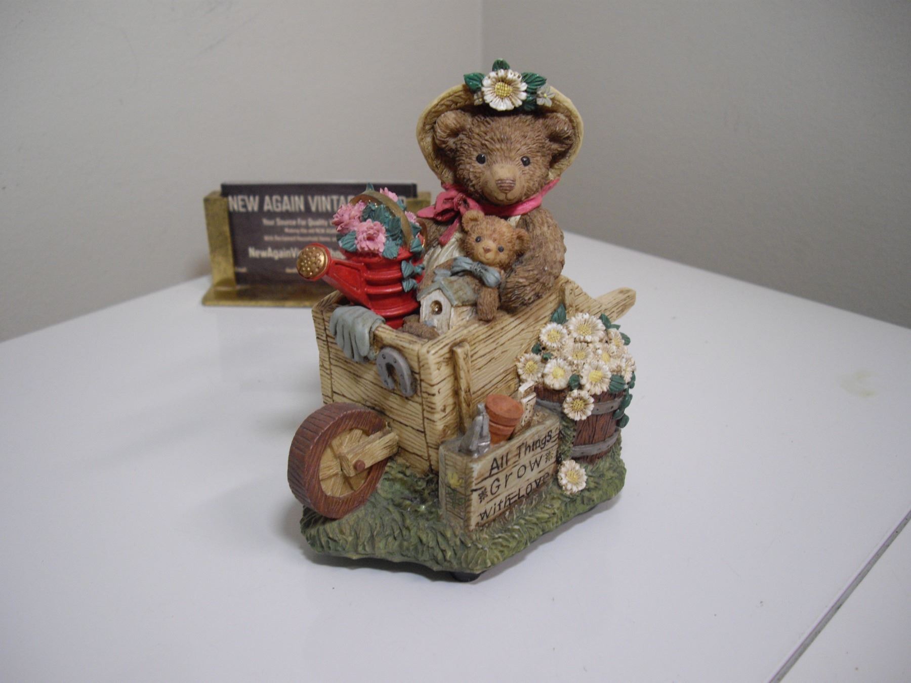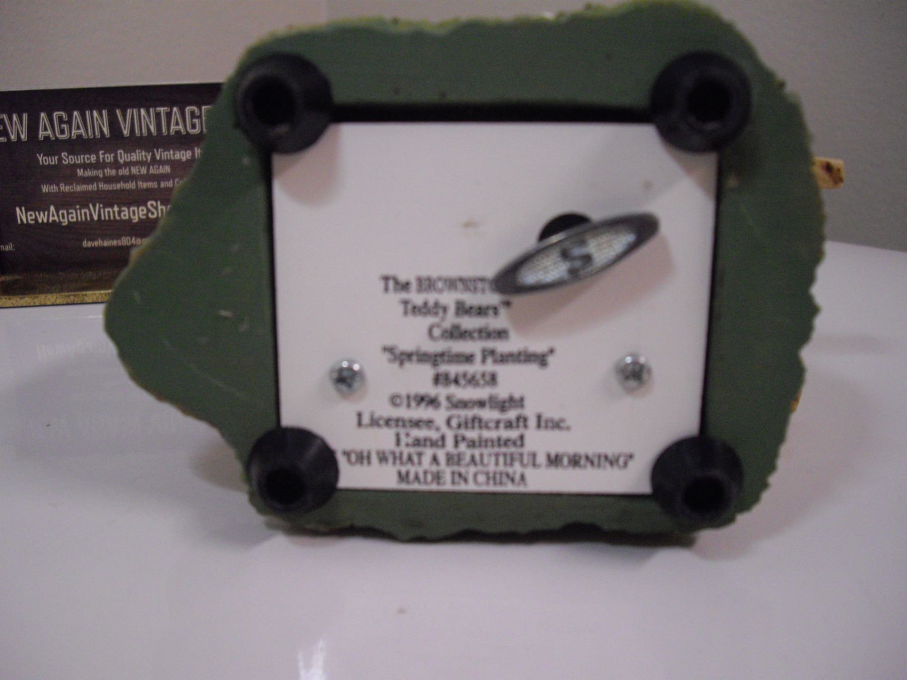 Musical ornament plays "Oh what a beautiful morning", very well like new. The ornament is from "The Brownstone Teddy Bear Collection". It is hand made out of resin and hand painted in China in 1996. It is approximately 5.5 " tall x 3 " wide x 4.75" long weight is 14 oz or 395 grams.