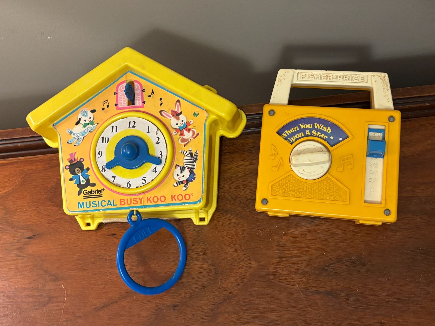 KooKoo Clock chimes Hickory, Dickory Dock, FP Radio plays,” When you wish upon a star”, when wound up.