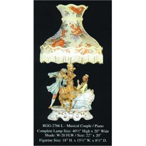 Capodimonte Porcelain "Musical Couple with Piano" lamp with shade Satisfaction Guaranteed All our capodimonte pieces are 100% authentic, made with the best craftmanship in Italy. Capodimonte is more than a century Italian style of the finest porcelain once reserved for kings and queens. The style became popular when the royal family in Italy fell in love with the beauty of Capodimonte arts. The selection you see is made by artisans, according to the same tradition dating back to the 18th Century.<BR>Free Shipping in the continental US