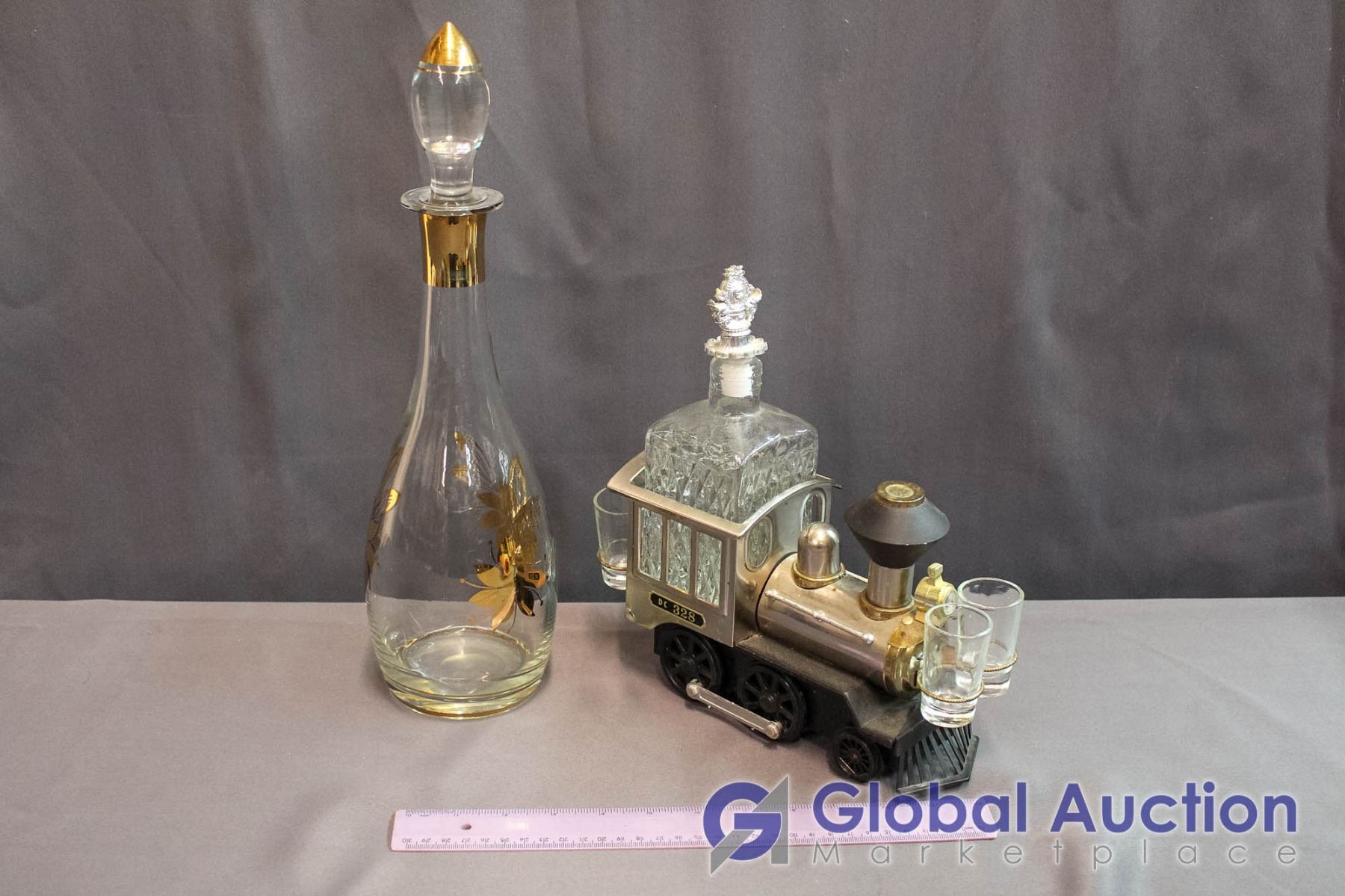 Musical Train And Gold Trimmed Decanters