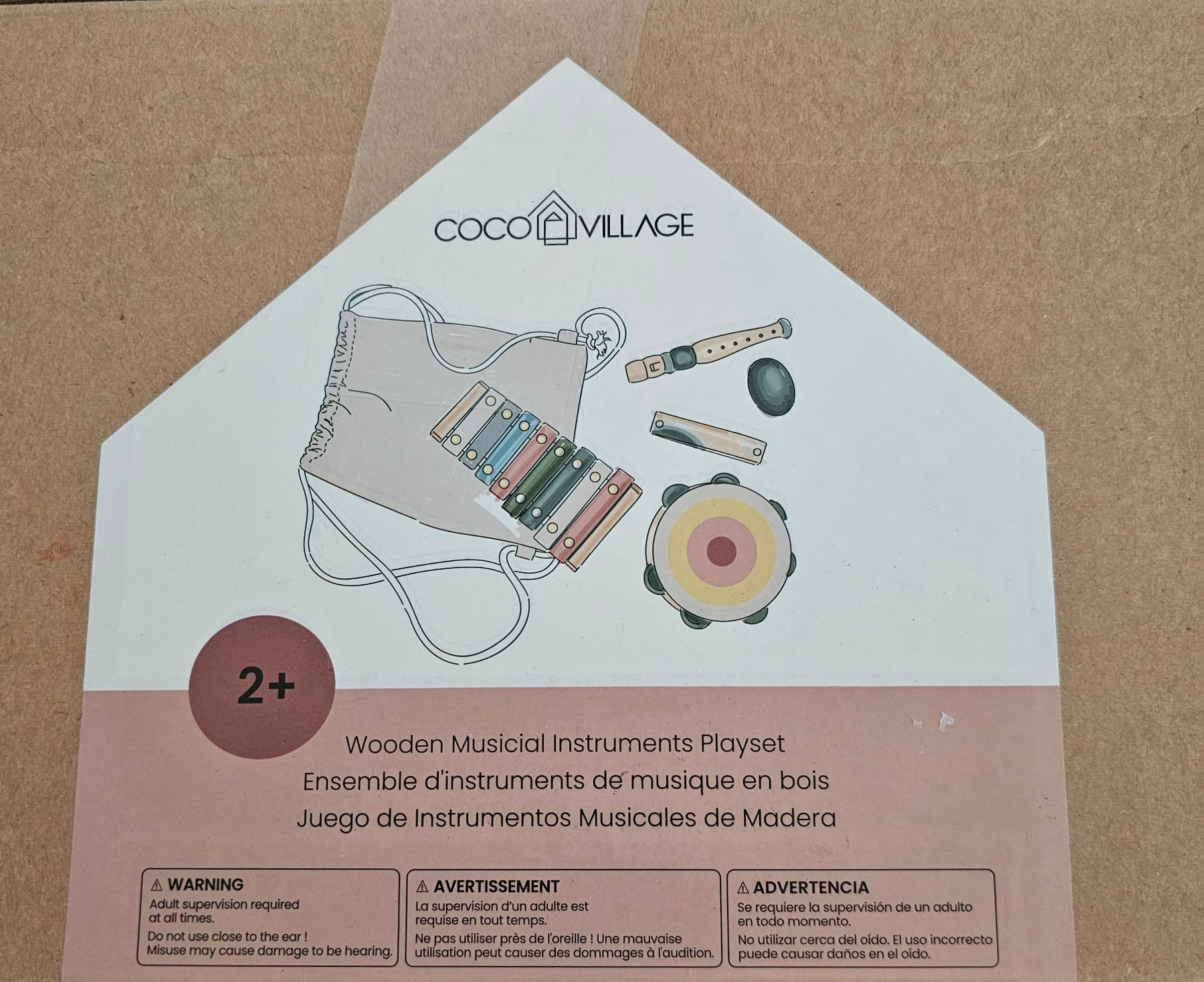 CoCo Village, Wooden Musicial Instruments Playset, Ages 2+, Shelf Pull, New Condition