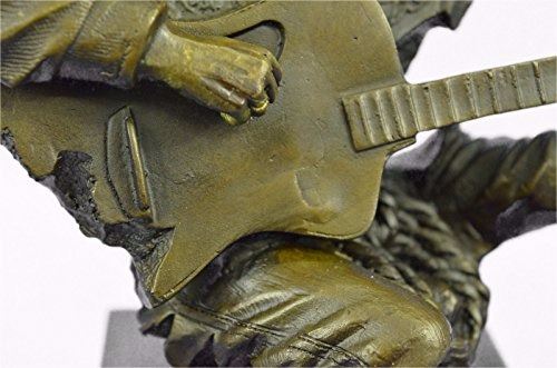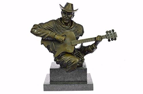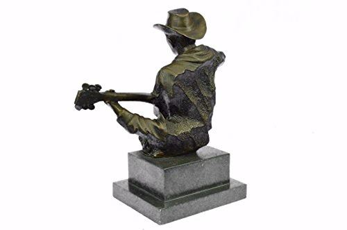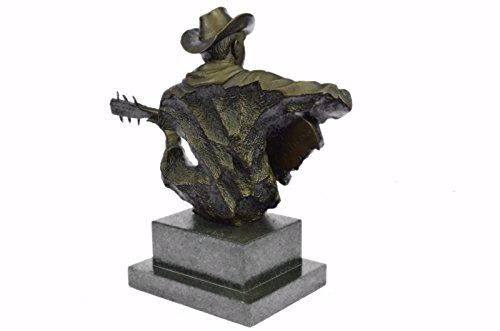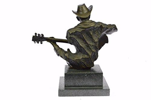 This Amazing And Creative Detailed Of A Cowboy Musician Playing His Guitar Is Exquisite. He Is Made With The Creation Of Your Imagination. His Eyes Are Concentrating On Each String He Touches, Making Sure He Don'T Make A Mistake. The Artist Only Captures The Mans Head, Face, Hands, Guitar And Blazer'S Collar. This Very Fine And Unique Abstract Was Casted Using The Ancient Old "Lost Wax Method" Stained In Brown Patina Finish For Preservation and Mounted Atop A Black Marble Base. Size: 9X9 inches. Weight: 8 LBS.
