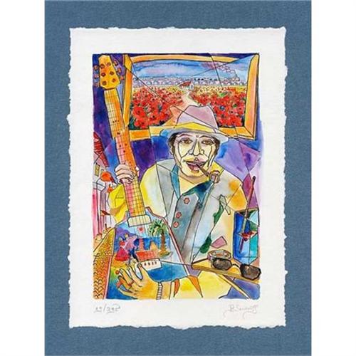 "Musician, Guitar and Poppies" cubism's litho #2223172
