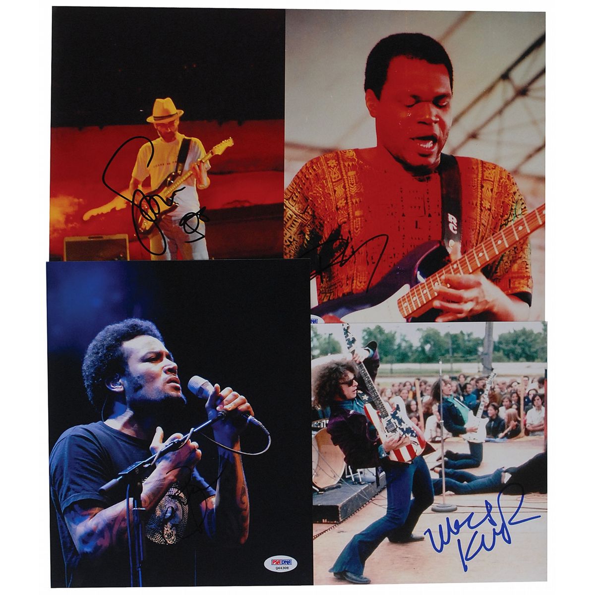 Four color photos of various finishes, 8 x 10 and 10 x 8, each signed in felt tip by the musician pictured. Signers are: Ben Harper, Wayne Kramer, Robert Cray, and Stone Gossard. In overall fine condition. Harper, Kramer, and Cray are accompanied by certificates of authenticity from PSA/DNA, and Gossard is accompanied by a certificate of authenticity from JSA.