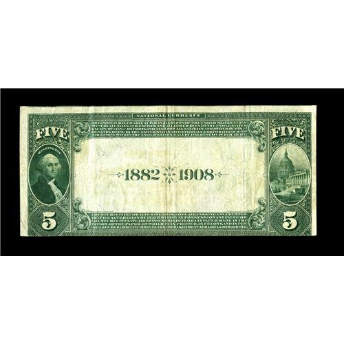 <B>Muskogee, OK</B></I> - $5 1882 Date Back Fr. 538 <B>The Commercial NB</B></I> Ch. # (W)5236<BR>This piece, which is new to the census, is one of only a handful of early non-Territorial examples known from here. It's an attractive note as well, with bright colors and vivid blue signatures easily offsetting a slightly close bottom margin. <B>Fine-Very Fine.</B></I><BR><BR><b>Shipping:</b> Coin/Currency (<a target="_blank" href="http://www.heritageauctions.com/common/shipping.php">view shipping information</a>)
