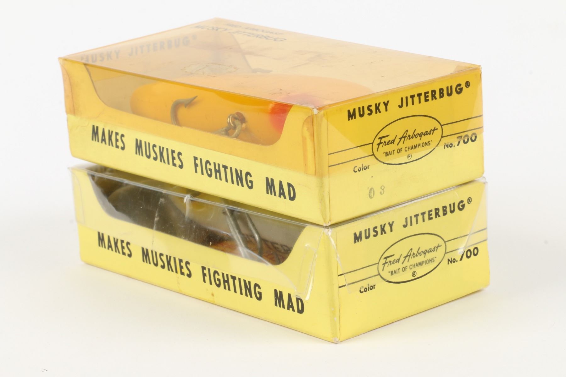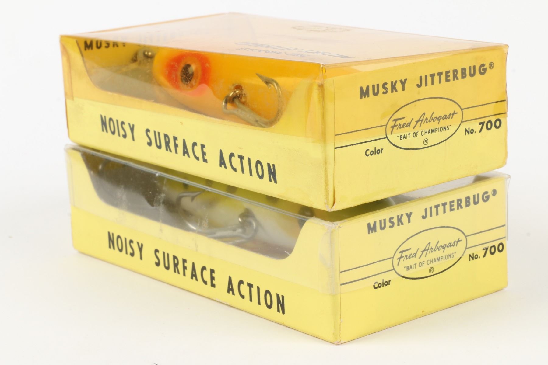 Fred Arbogast, United States. Boxed. Material: Plastic. Quantity: 2. Grade: VG+. 4.5" each. Est. $75-100.