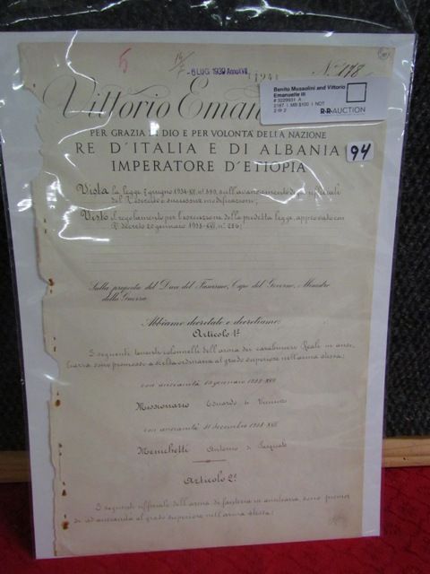 Rare, authentic, Benito Mussolini & Vittorio Emanuelle III signed document dated 1939