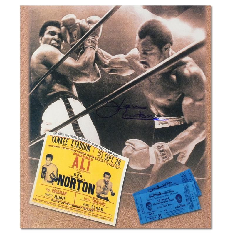 A must-have photo collage commemorating the monumental boxing matches between Mohammad Ali and Ken Norton, "Ken Norton and Ali Ticket" is hand-autographed by Norton (1943-2013)! Includes Certificate of Authenticity! Measures approx. 12" x 14" (no border). Retail Price $295. PRICE INCUDES FREE SHIPPING IN THE U.S. - SHIPPING WILL BE ADDED TO YOUR INVOICE FOR ALL BUYERS OUTSIDE OF THE U.S.