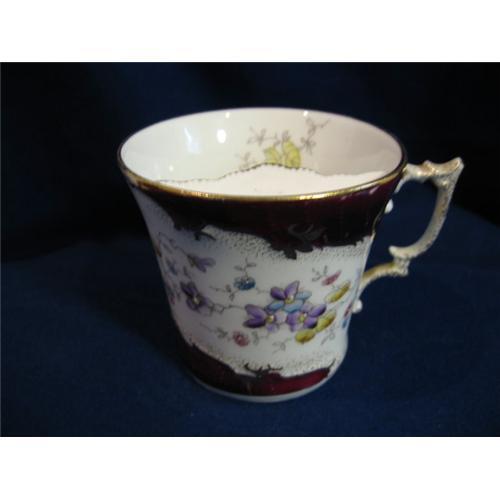 This "mustache cup" is really beautiful!It has a floural design with a gold overlay applied.There are no flaws and would be a nice piece to a collector!