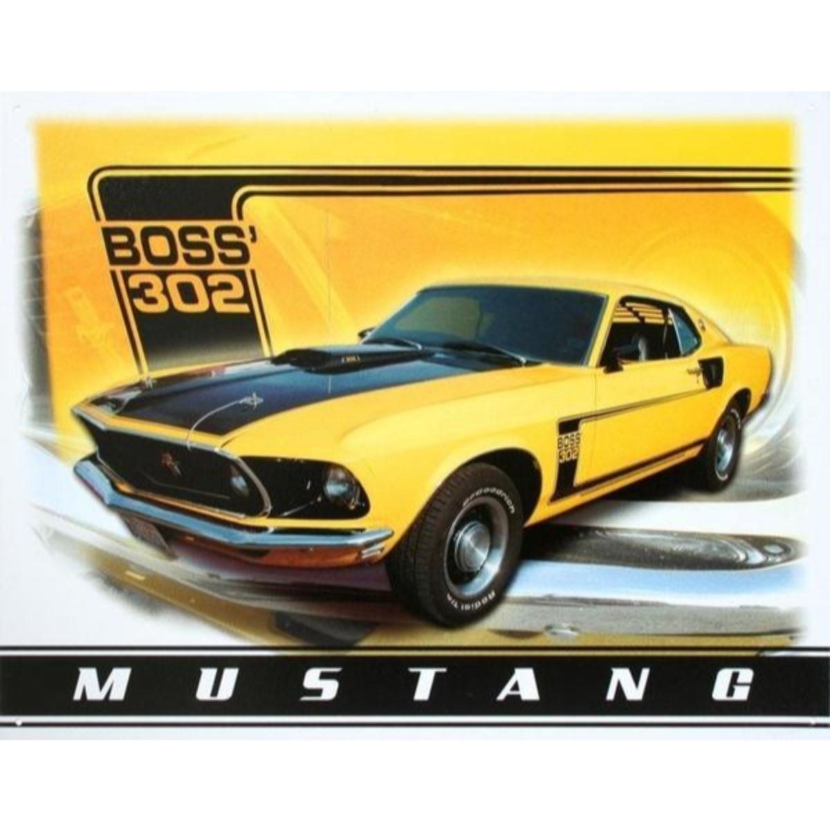 Mustang Boss 302, Ford Motor Company, garage pub bar advertising sign. 12 1/2" X 16" with pre-drilled holes for mounting.