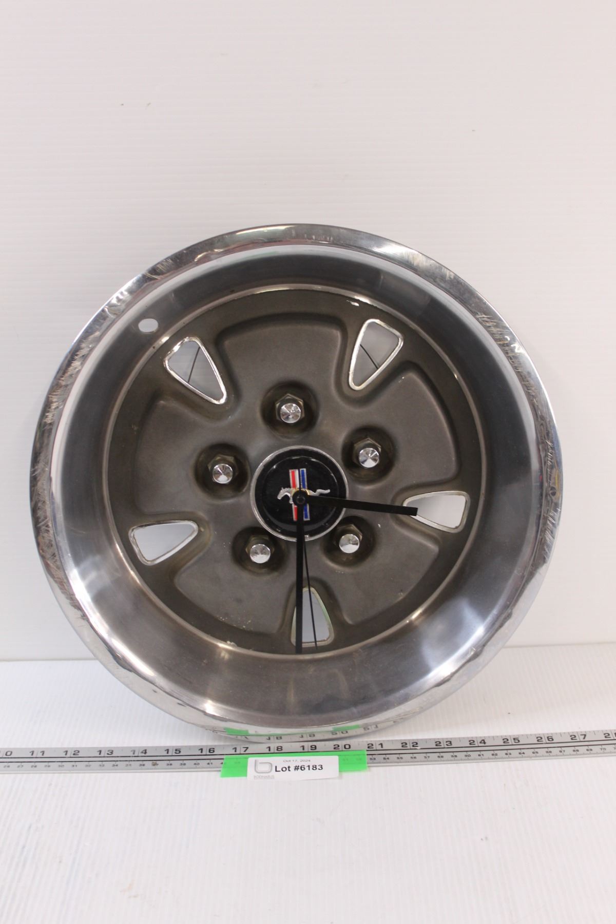 Mustang Hub Cap Battery Operated Wall Clock - 15" Diameter