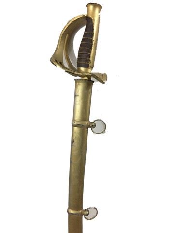 Mutiny on the Bounty (1962) -Calvary sabre prop swords. Gold sheath is made of wrapped leather with two belt loop rings. Hilt is made of resin painted gold with a brown leather grip and gold detail. (measures 42" long)This incredible memorabilia comes direct from the Debbie Reynold's archive collection. Debbie Reynolds and Todd Fisher purchased and acquired this amazing collection decades ago from the MGM auction, 20th Century Props auctions, Christie's auctions, Planet Hollywood and numerous additional auctions. Debbie Reynolds then opened Hollywood Central Props where many of these props and costumes were used in the making of feature films and television shows. This auction also marks the beginning of a long-term collaboration with The Debbie Reynolds’ Archives and her son Todd Fisher with a collection of props, costumes and photos including an ensemble from CHOCOLAT, ROMEO AND JULIET, MISSISSIPPI, V FOR VENDETTA, THE PATRIOT, THE LAST SAMURAI and more!