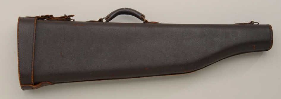 Mutton leg style brown leather shotgun case in overall good condition. Est.: $30-$60.