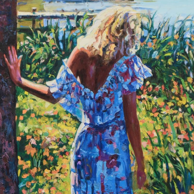 "My Beloved, By The Lake" is a limited edition giclee on canvas by Howard Behrens (1933-2014), numbered and bearing the authorized signature of the artist. This piece is from Behrens' Legacy Edition. Includes Certificate of Authenticity. Measures approx. 24" x 36" (image).