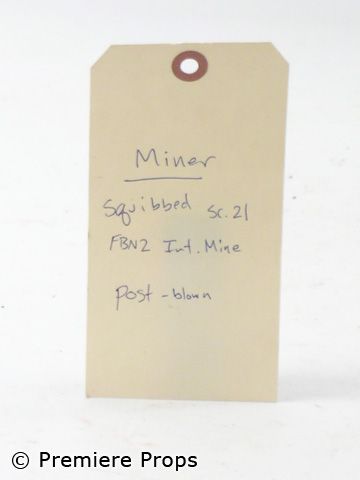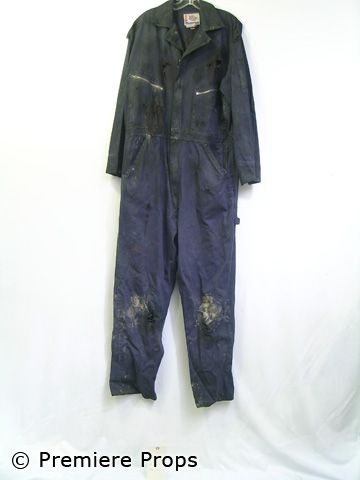 The Miner's dirty, distressed, and bloody, Hero, navy cotton "Dickies" long sleeve coveralls. (size L) Includes wardrobe tag and screen worn after the explosion in the mine.