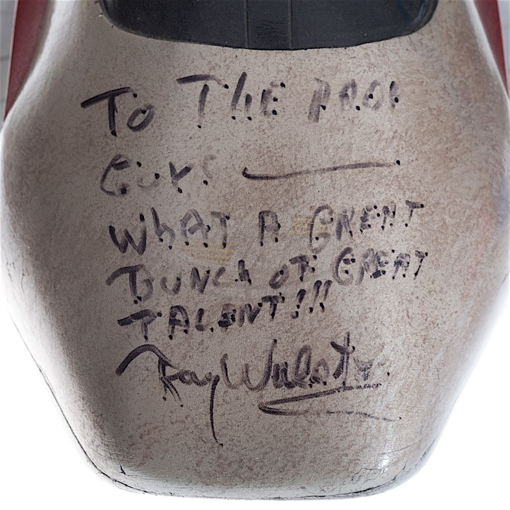 (Walt Disney, 1999) This miniature ship was custom-made by the production for use by Christopher Lloyd as " Uncle Martin". The miniature ship is one of only two hard rubber versions made and used during filming. This detailed miniature ship features a custom paint scheme, with only minor wear from use and storage. Ray Walston (who played Uncle Martin in the original 1960's television series) had a small part in the film and autographed this iconic prop for the on-set propmaster after filming. Ray Walston inscribed: "To the prop guys_____. What a great bunch of great talent!!! Ray Walston". Making this a very special artifact from the film. The miniature measures 12" x 9" x 6.25". For this particular item our ScreenUsed COA has been signed by the Assistant Property Master from the film.