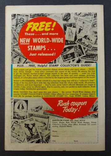 A few relatively minor wrinkles and crinkles on the front cover. If the whole book was like the front it would grade "FINE" but the back cover is a little weaker. Let's grade it as a safe "VG" Jack Kirby cover and interior art. Est $60-$70