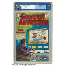 <B>My Greatest Adventure #74 Pacific Coast pedigree (DC, 1962) CGC NM 9.4 White pages.</B></I> The face of the madman on this cover has the moody lighting effects that are the trademark of Gene Colan. Colan also drew the corresponding story; the issue's other artists include Mort Meskin. This is the highest-graded copy of this issue that CGC has certified to date. Overstreet 2004 NM- 9.2 value = $90. CGC census 12/04: 1 in 9.4, none higher.