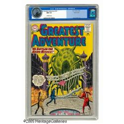 <B>My Greatest Adventure #76 Pacific Coast pedigree (DC, 1963) CGC NM 9.4 Off-white pages.</B></I> The Micro-Menace is tearing down the gate! Never mind that, he's tearing down the <I>logo</B></I>! The cover scene is by Mort Meskin, who also drew an interior story. This is the highest-graded copy of this issue that CGC has certified to date. Overstreet 2004 NM- 9.2 value = $90. CGC census 12/04: 1 in 9.4, none higher.