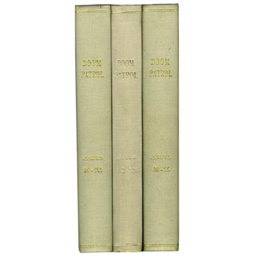 <B>My Greatest Adventure #80-85 and Doom Patrol #86-121 Bound Volumes (DC, 1963-68).</B></I> The entire Silver Age Doom Patrol saga is here, from the group's first appearance in <B>My Greatest Adventure</B></I> #80 to the death of the group in <B>Doom Patrol</B></I> #121 (the last non-reprint issue of the series). The trimmed and bound copies are in three hardcover volumes with the issue numbers embossed on the spines of the books. The pages show some tanning, and many of the comics have subscription creases. Overstreet VG 4.0 value for group = $764.