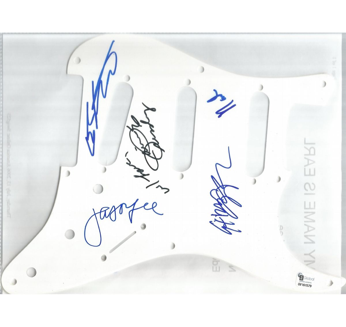 One of a kind Fender electric guitar pickguard signed by the entire cast Jason Lee, Jaimie Pressly, Ethan Suplee, Eddie Steeples, and Nadine Valasquez