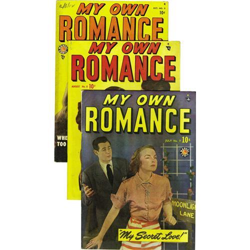 This early Marvel romance group will have you swooning with five of the issues having photo covers. Included are #7 (FN/VF), #8 (VG/FN), #9 (FN), #11 (VF-), #12 (FN+), #13 (VF+), #14 (Bob Powell art - VF-), #15 (FN+), #17 (VG+), #18 (VF-), #20 (FN+), #22 (VF/NM), #24 (FN/VF), #25 (VF-), #33 (FN), and #34 (VF). Approximate Overstreet value for group = $575. <I>From the Crippen Collection</B></I>.<BR><BR><b>Shipping:</b> Un-Slabbed Comic (<a target="_blank" href="http://www.heritageauctions.com/common/shipping.php">view shipping information</a>)