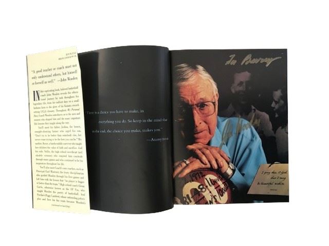 "My Personal Best: Life Lessons from an All American Journey" by John Wooden with Steve Jamison hardcover first edition library found gold foil lettering on spine and high-quality dust jacket title page personally signed to Barry Levy- thank you for your kind words about our book my personal best coach woman is one of a kind and I sincerely hope the book captured his story here yours truly Steve Jamison. Followed by a photograph of John Wooden and autographed by John Wooden in gold marker.