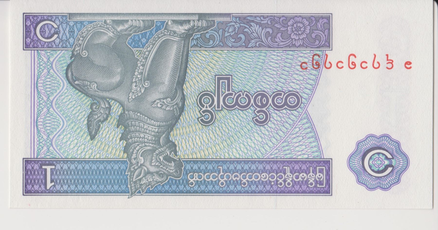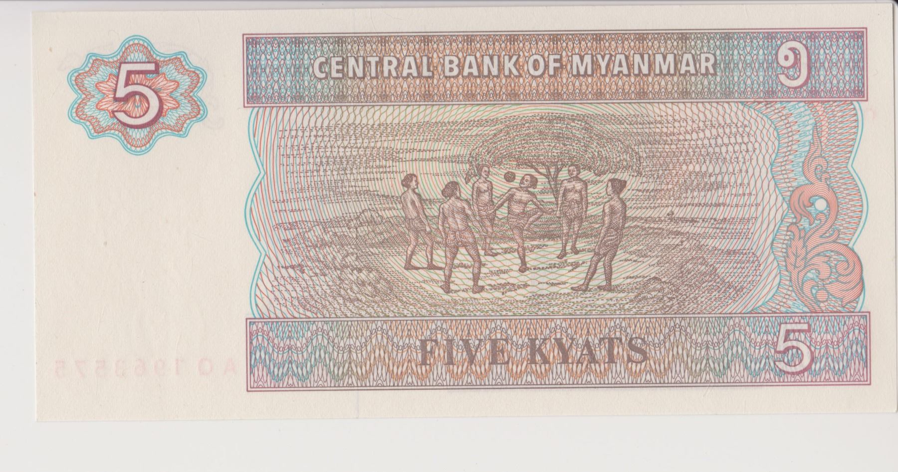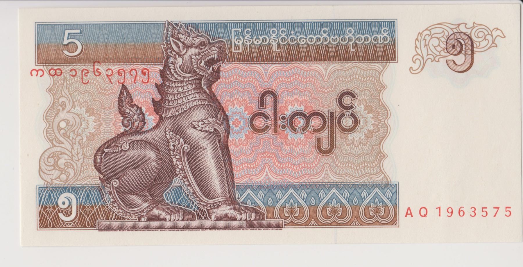 Myanmar (formerly Burma) 3 paper currency, 2 Kyat, 5 Kyats, ex cond