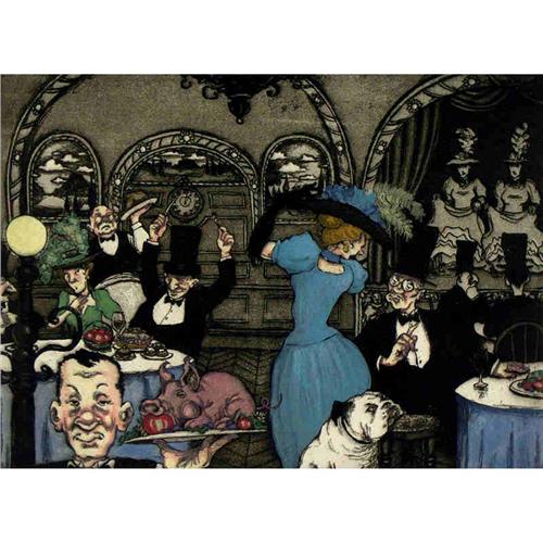 [Canadian b. 1961] LA BELLE EPOQUE Hand-coloured aquatint on paper; Ed. #A/P 9.5 x 13 in. Signed, titled & editioned.
